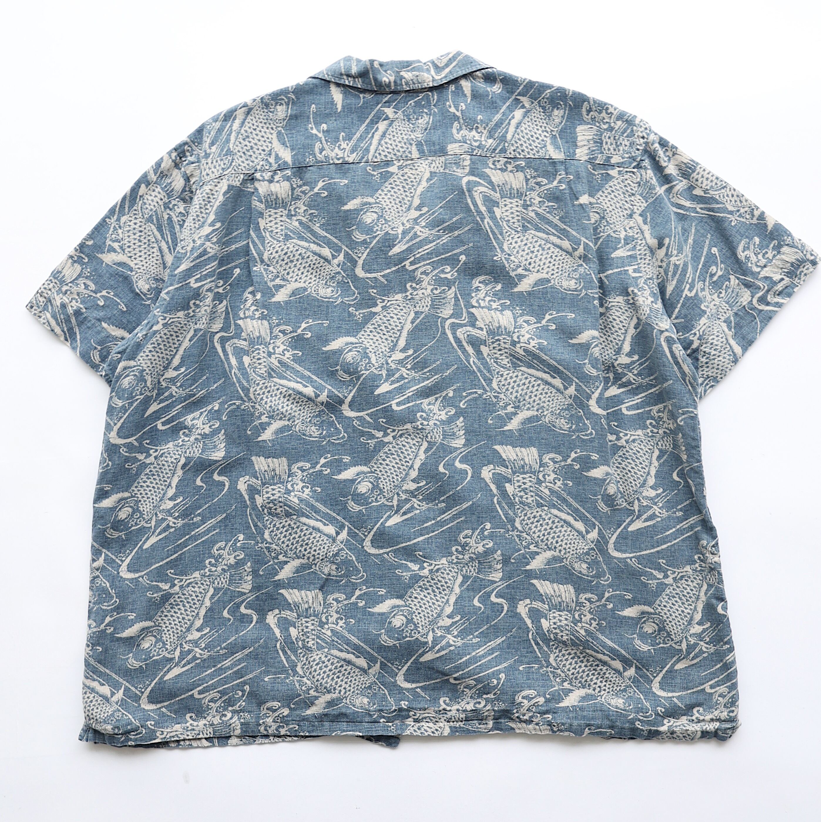 全面に鯉が泳いでいる様子がプリントされており、和風テイストな柄の半袖シャツとなっています。