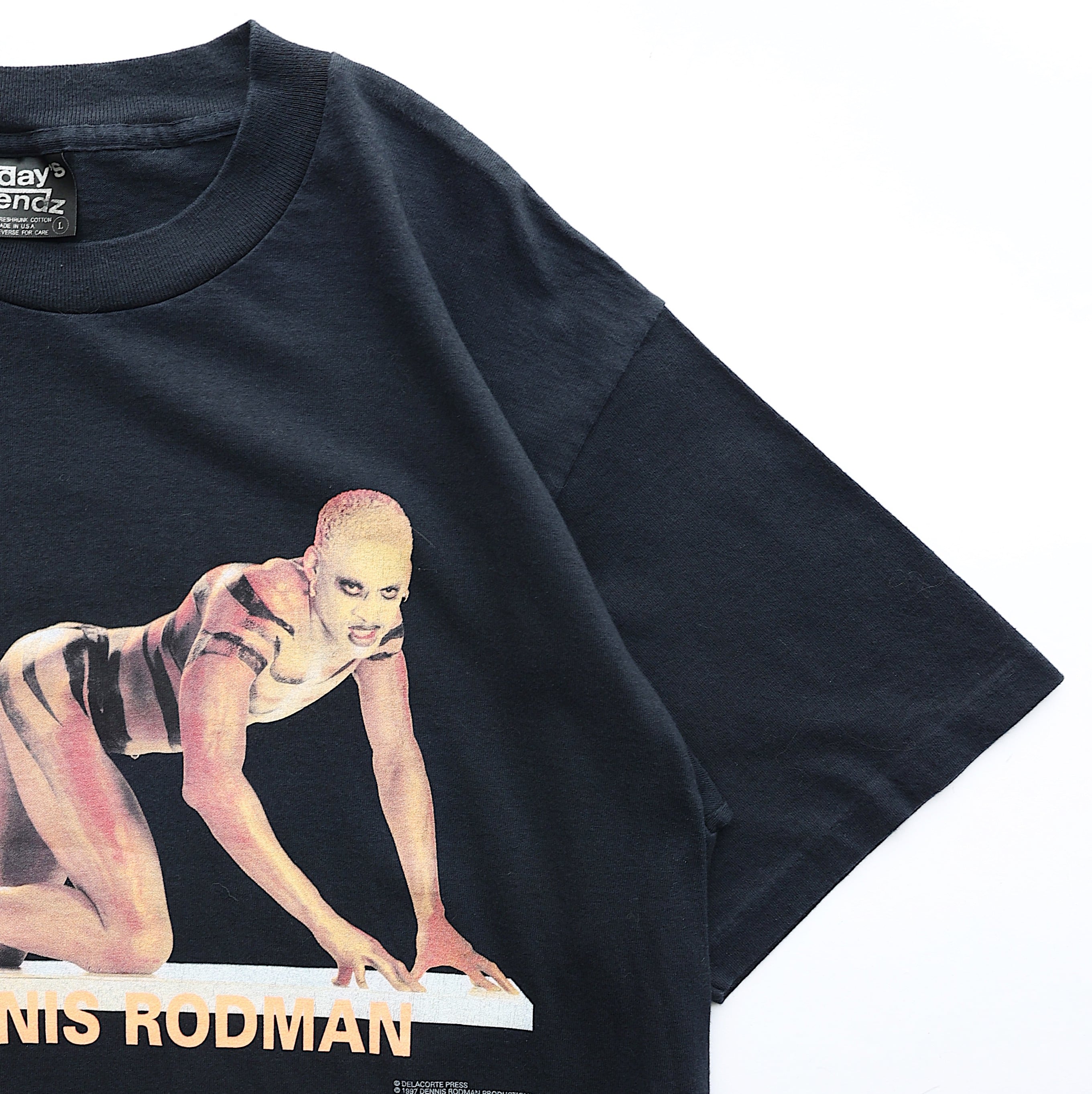 バスケットボール選手のデニス・ロッドマンが1997年に出版した自叙伝【WALK ON THE WILD SIDE】のプロモーションTシャツです。