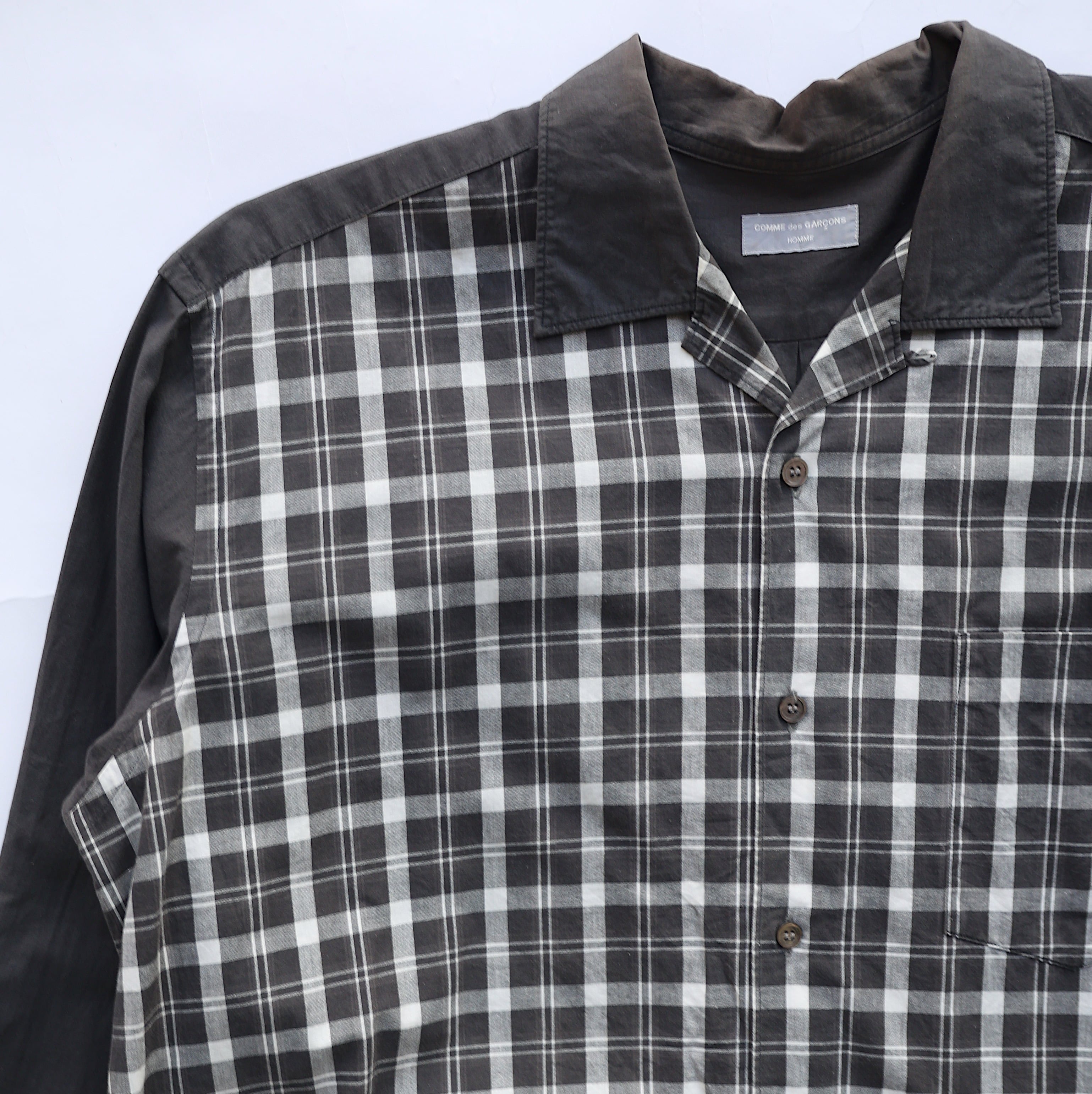 COMME DES GARCONS HOMME OPEN COLLAR CHECKED SHIRT