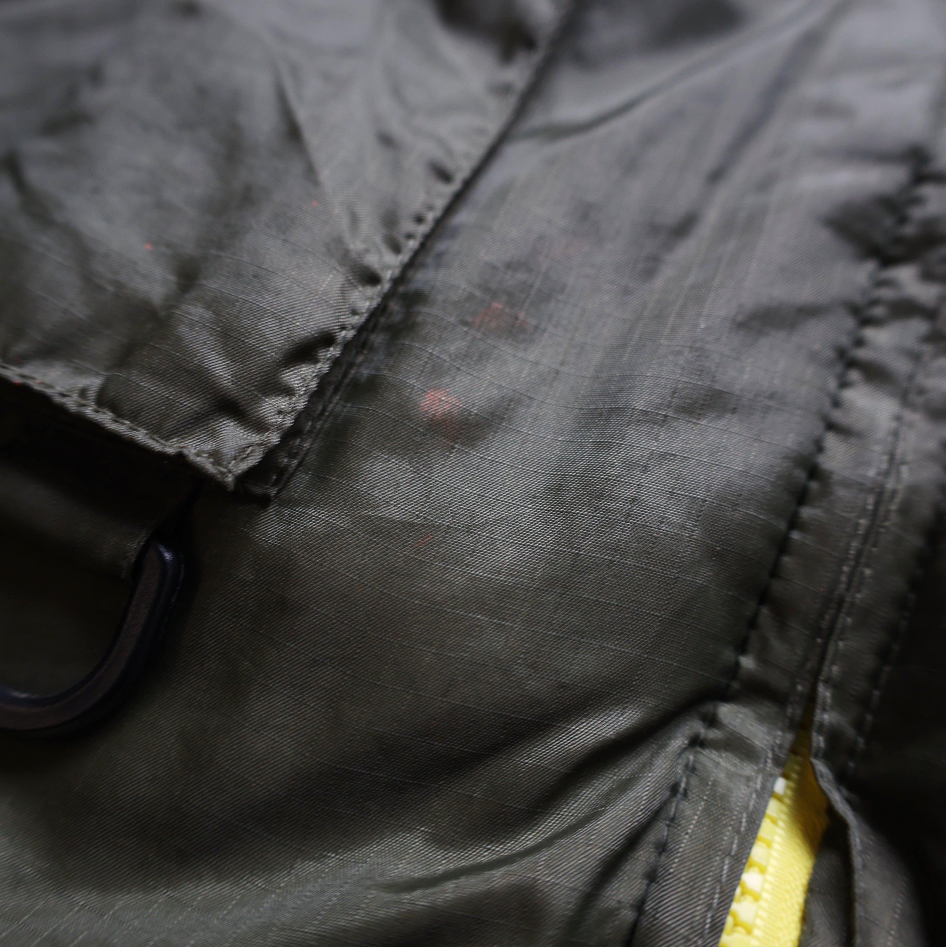フロントポケット付近、フロント下部ドローコード付近、バックポケット付近に汚れ有り