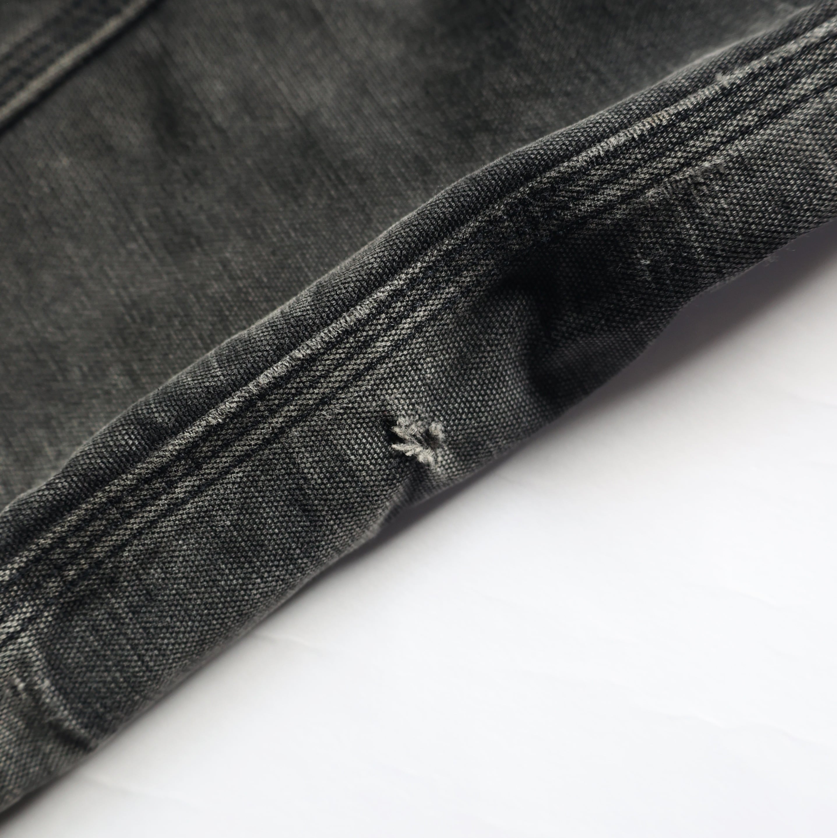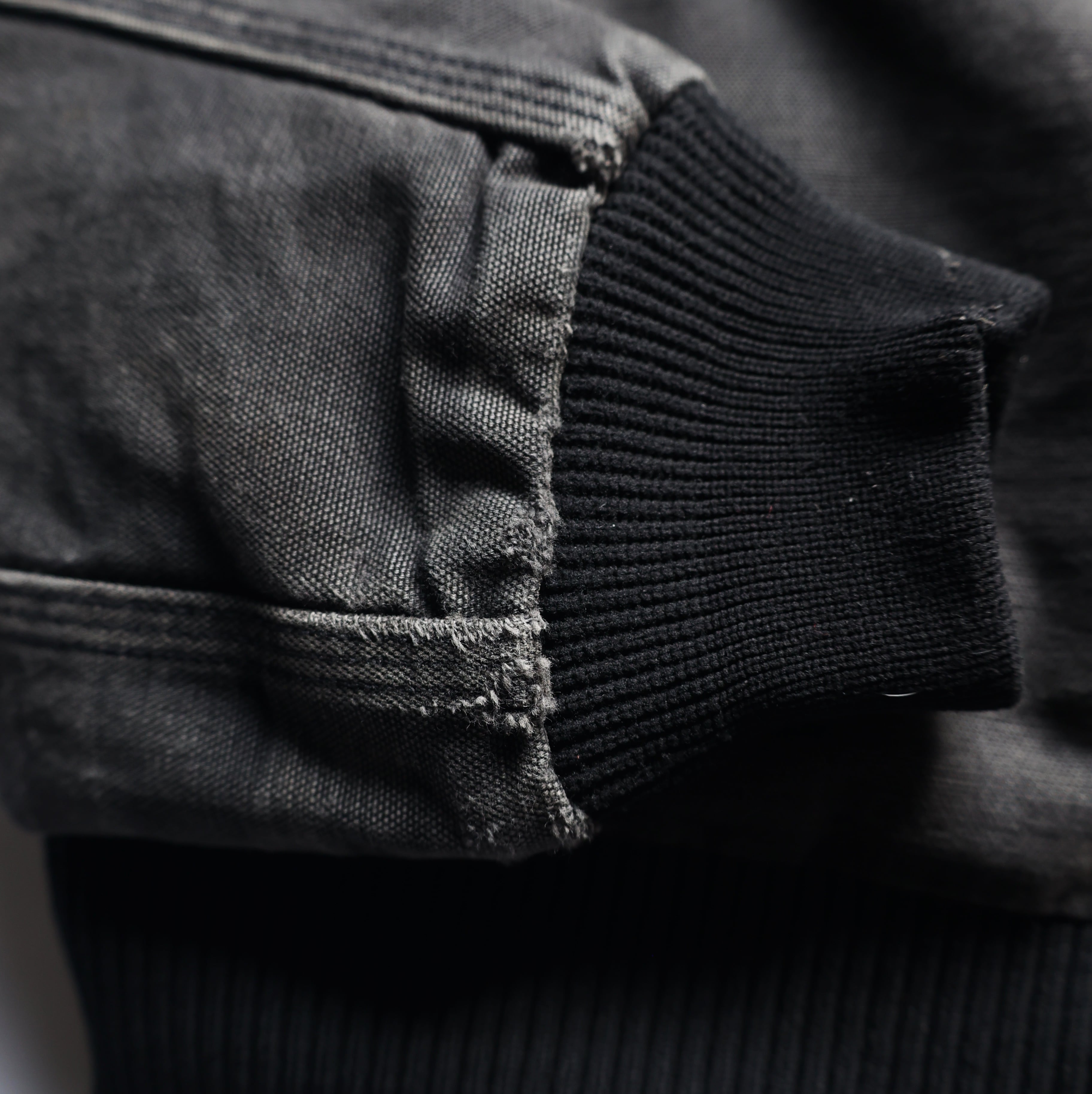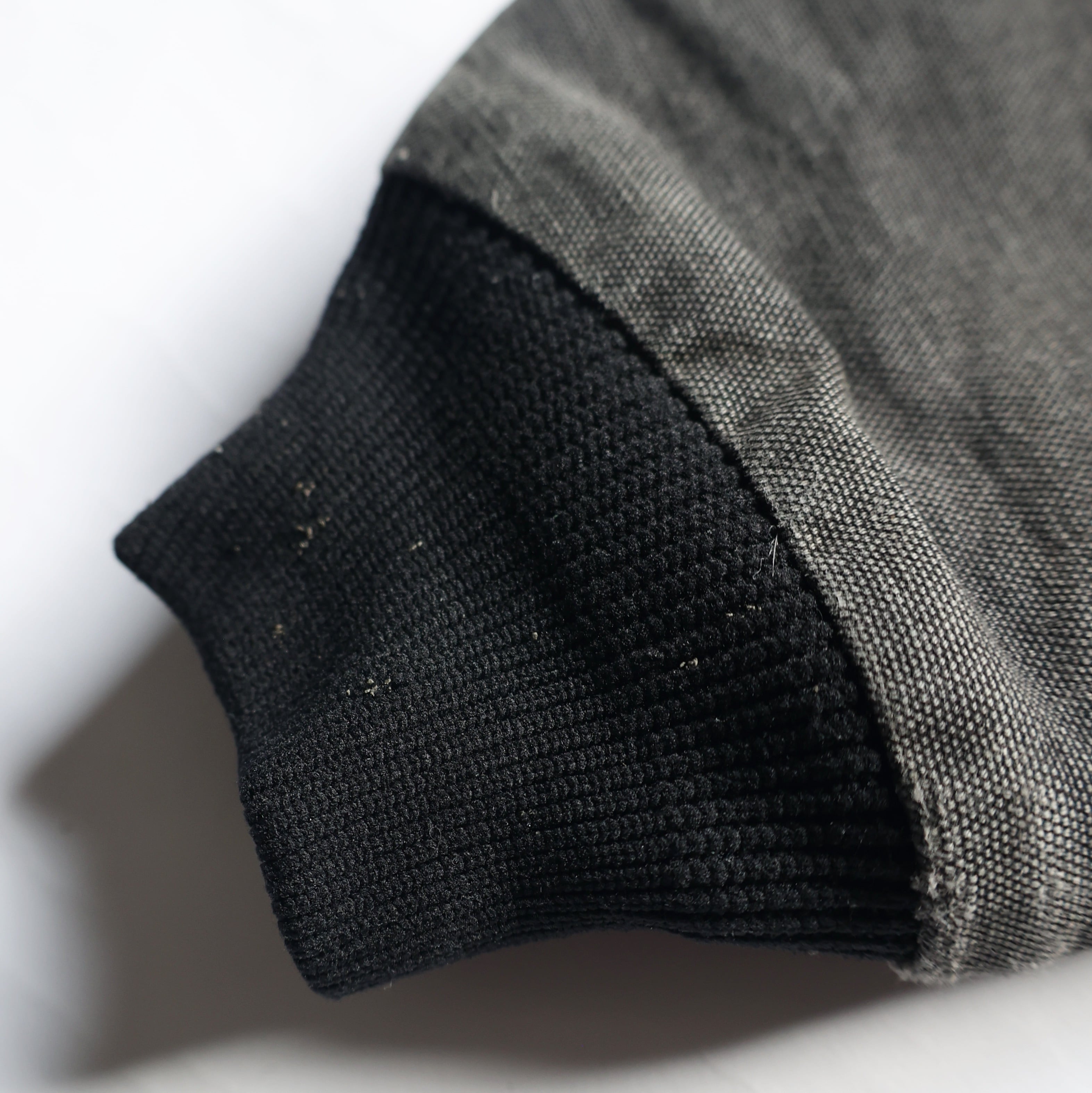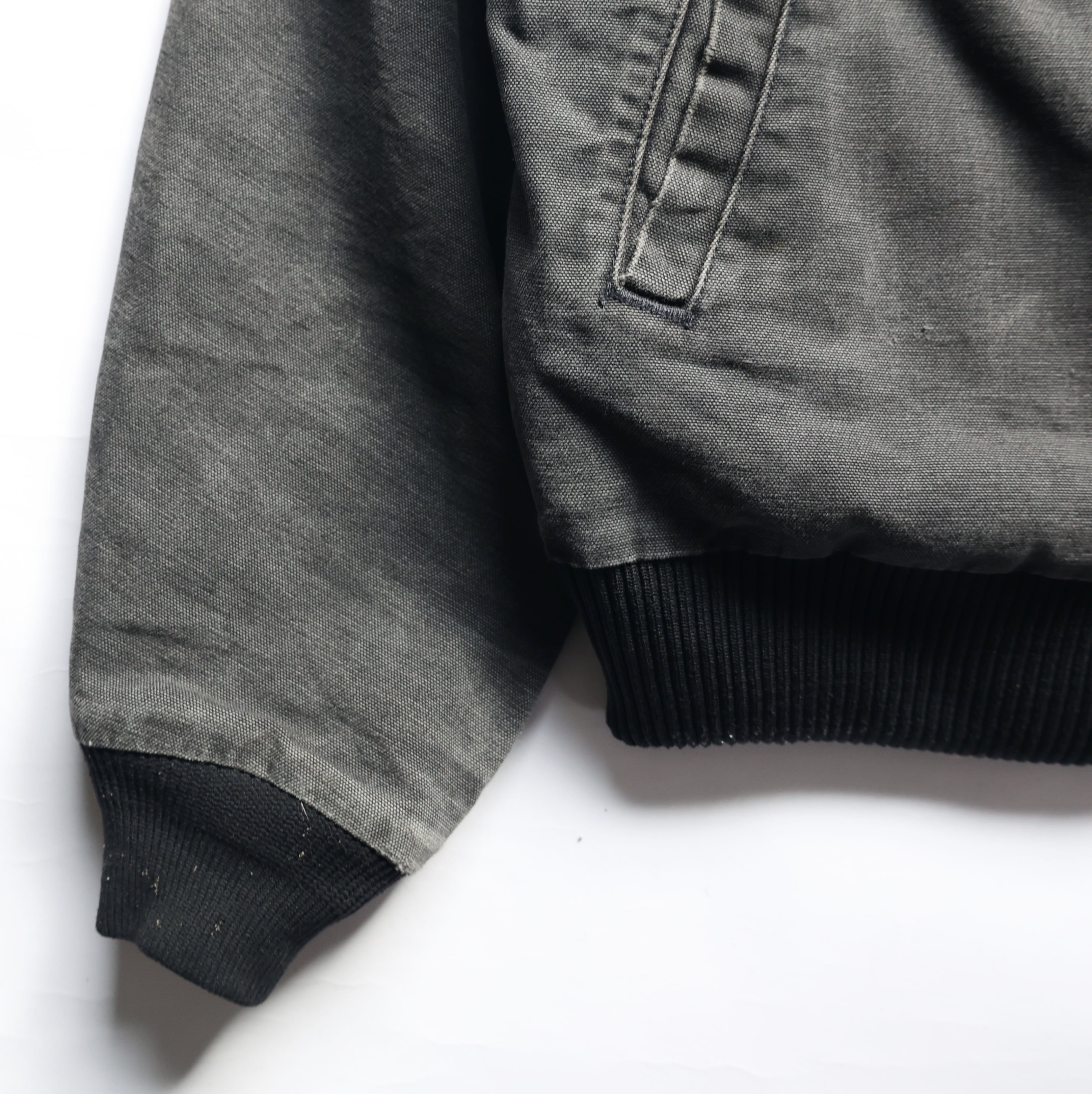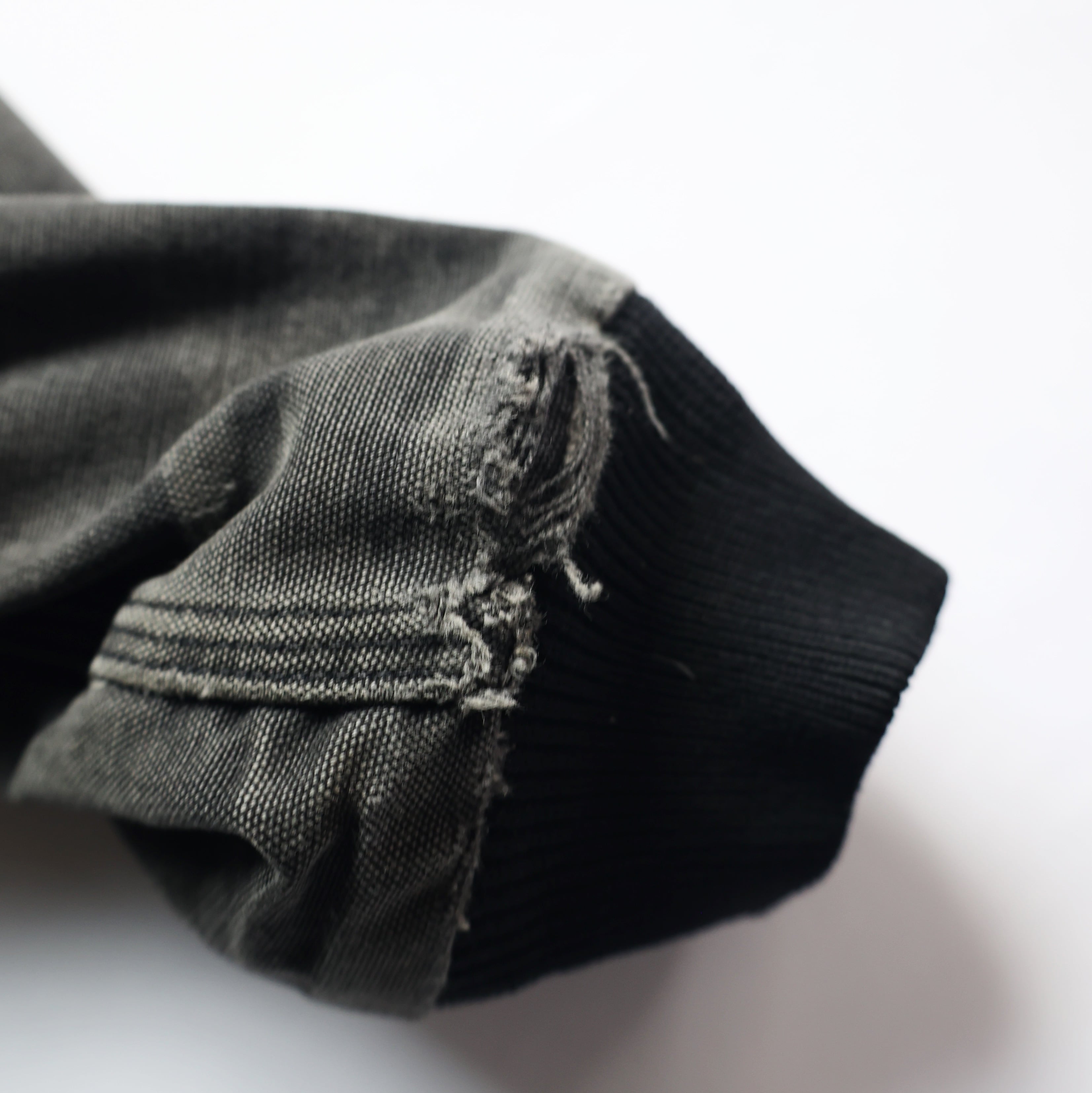 フロント下部ポケット付近、両袖リブ付近、左袖にダメージ有り