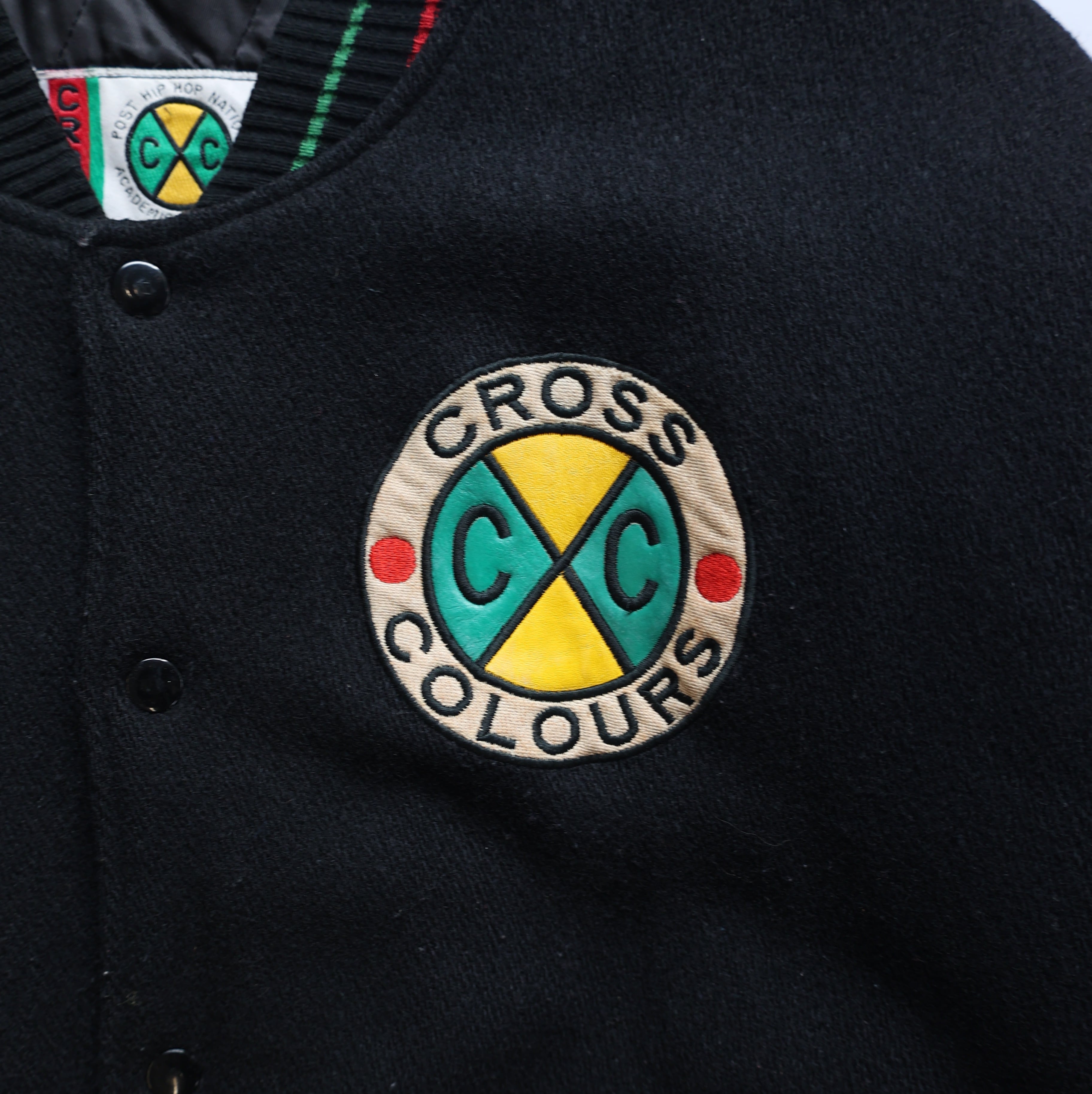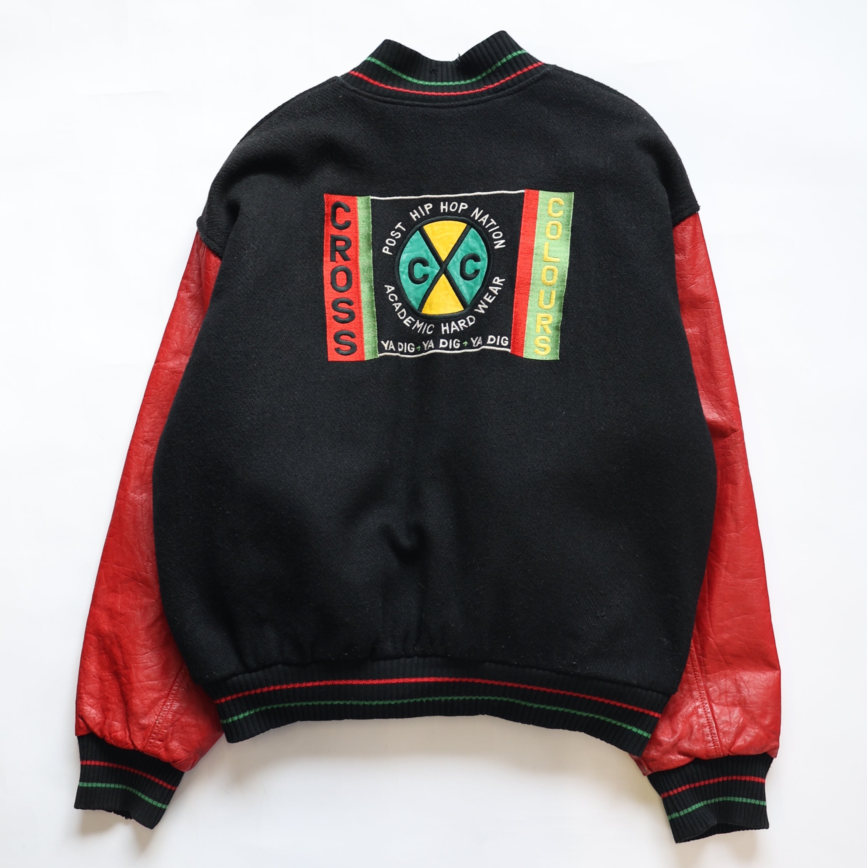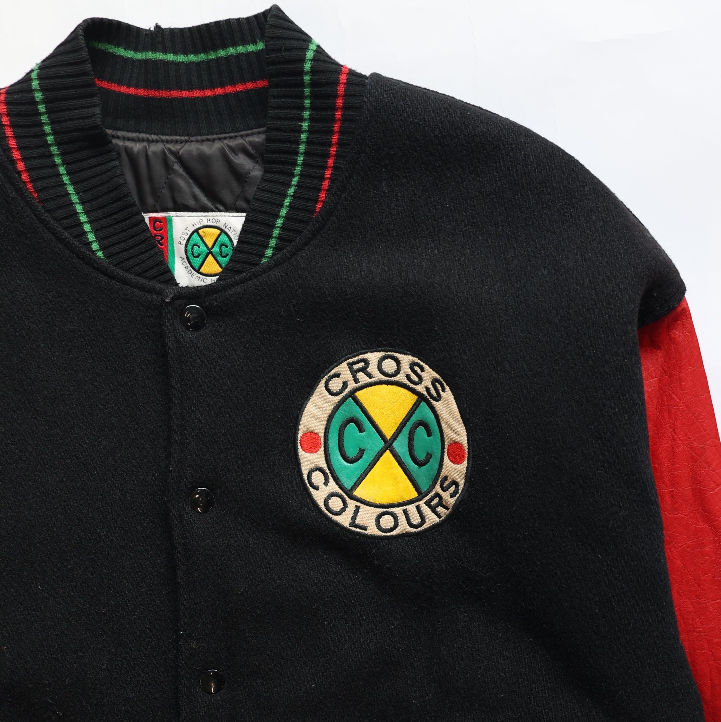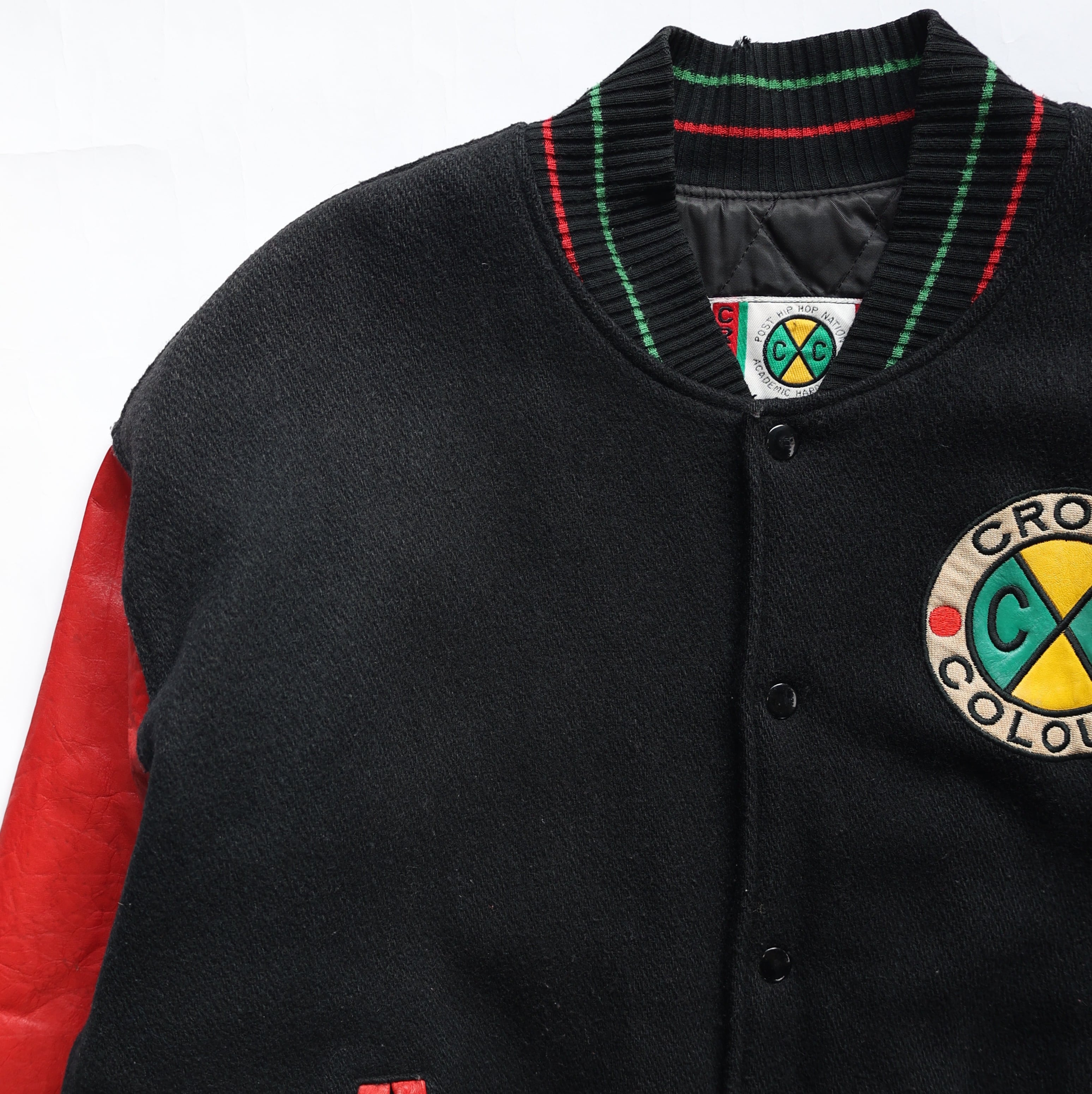 90S CROSS COLOURS WOOL LEATHER STADIUM JACKET